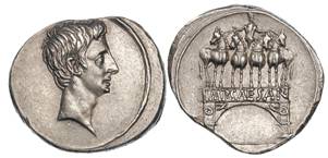 CAESAR sull’architrave compare su denari di Ottaviano del